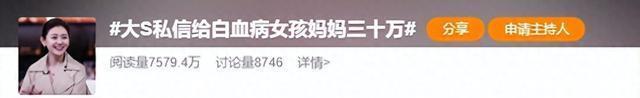 大S私信给白血病女孩妈妈捐款30万,详情曝光,生前也曾低调助乡